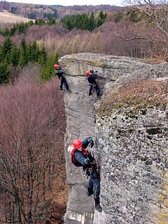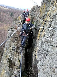 V dňoch 06.-08. apríla sa členovia lezeckej skupiny Okresného riaditeľstva Hasičského a záchranného zboru v Trenčíne zúčastnili na prehliadke a výcviku na cvičisku lezenia po zaistených cestách - VIA FERRATA vo Vojenskom výcvikovom priestore Lešť.