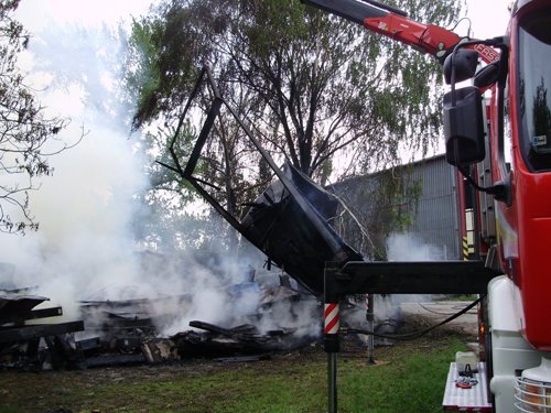 Požiar sa podarilo hasičom lokalizovať v čase 16:24 hod.. Nakoľko konštrukcia objektov bola zrútená, bolo vytvorených viacero ohnísk, ktoré boli ťažko dostupné. Na miesto bolo následne z Hasičskej stanice v Trenčíne povolané vozidlo Renault Kerax, ktorým sa pomocou hydraulickej ruky a navijáka podarilo postupne rozoberať konštrukcie horiaceho objektu vzdialenejších ohnísk.