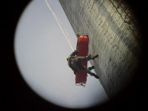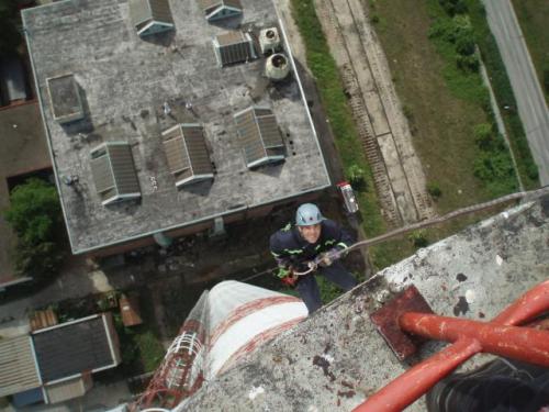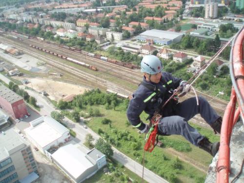 Lezecká skupina vykonala výcvik na továrenskom komíne vysokom cca