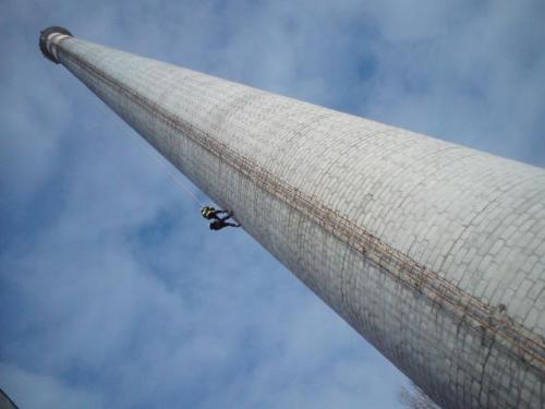 Zlaňovanie 12O metrov vysokého komína